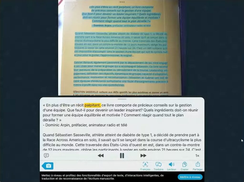 Livres (Apple Books) : gratuit . Pour les manuels numériques, les EPUB, certains PDF, et la lecture confortable, Livres fait le job. Sur iPad, le confort de lecture, le réglage de police, la taille de texte et les options iOS d’accessibilité peuvent déjà aider énormément, sans installer quoi que ce soit. Si vous voulez d’autres plateforme de livres électroniques et livres audios voici mon comparatif les Les 10 Meilleurs plateformes de livres audio pour DYS