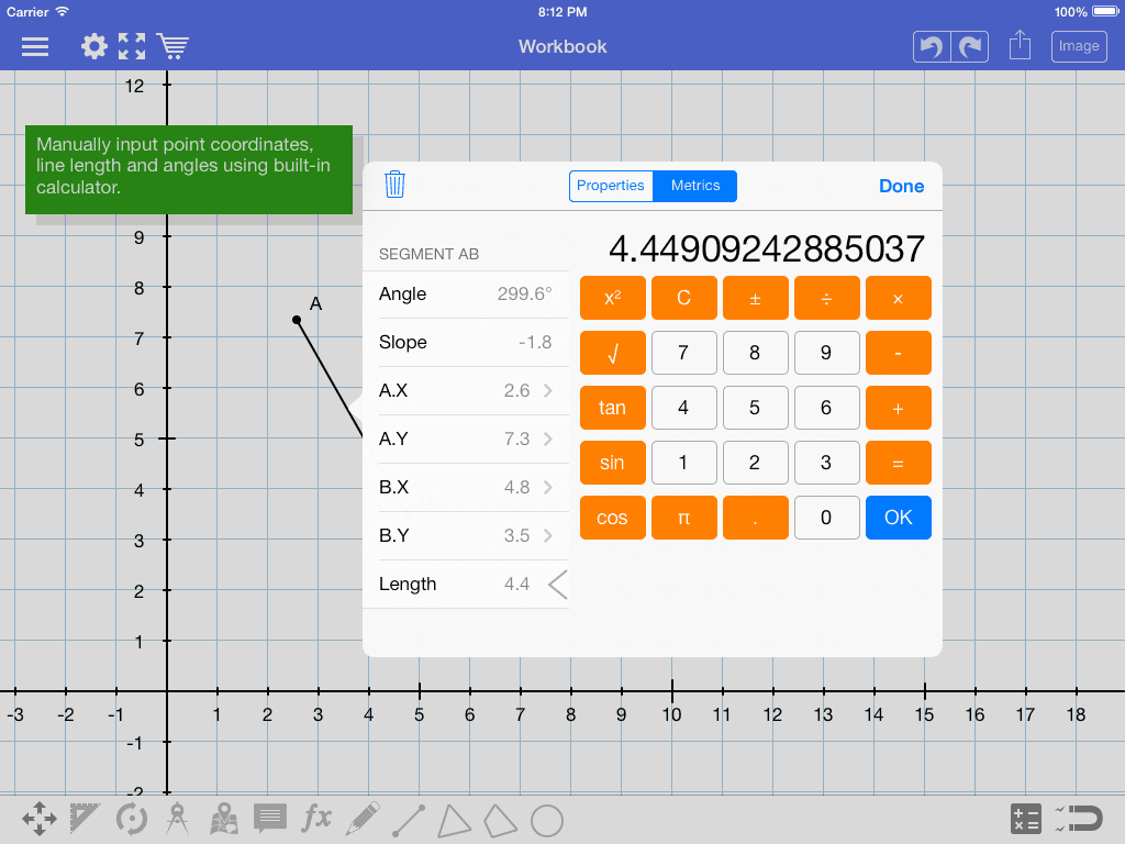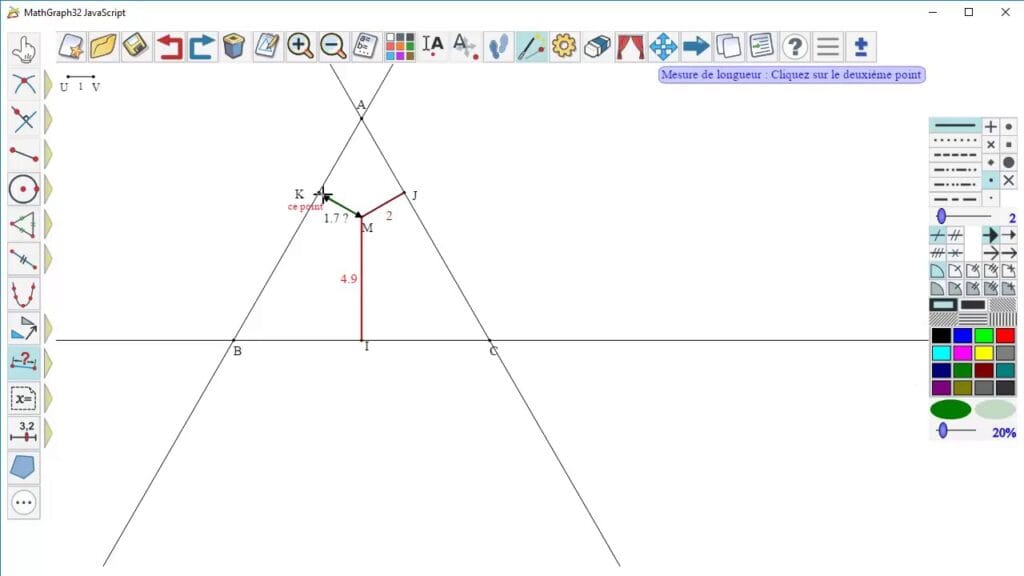 Geometry Pad est une appli de géométrie pensée pour l’iPad, avec une logique “cahier” (on fait défiler, on zoome, on construit). L’intérêt en classe, c’est de produire des tracés propres sans lutter avec le geste, tout en gardant des mesures fiables. Tu poses des points, segments, angles, triangles, quadrilatères, cercles, puis tu mesures longueurs, angles, périmètres et aires. L’app aide aussi sur les constructions “propres” avec des segments parallèles, perpendiculaires ou tangents qui s’alignent automatiquement quand tu les ajustes.