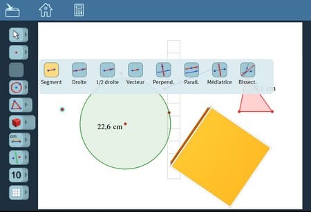 Cabri Express vise un point très concret : limiter les allers-retours entre plusieurs apps. Pour certains élèves DYS, c’est ça le problème. Ils savent faire, mais ils se perdent dans la navigation, les copiés-collés, les fenêtres, les exports. Cabri propose un environnement intégré : géométrie dynamique (avec instruments virtuels), calculatrice, graphes, et éditeur de formules. En classe, c’est particulièrement utile pour les élèves qui ont besoin d’un “laboratoire” : je manipule une figure, je mesure, je note, je passe à un calcul, puis j’exporte. Les instruments virtuels (rapporteur, compas) sont un vrai plus pour dyspraxie et difficultés de geste.