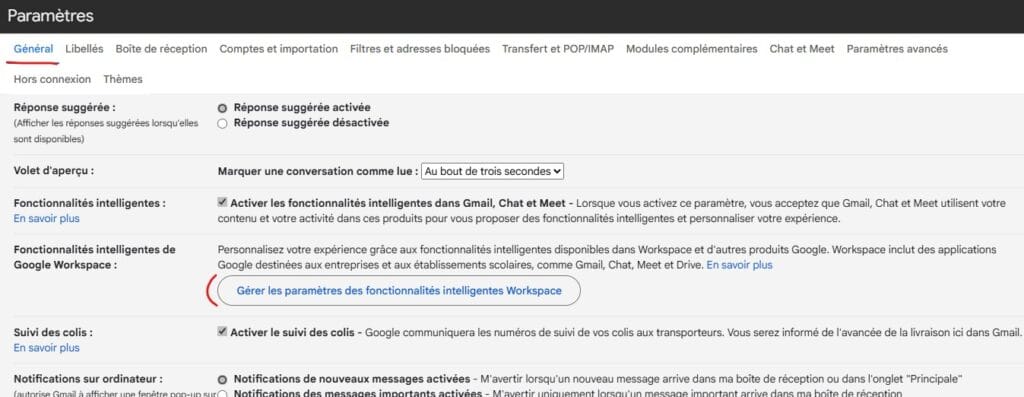 2. Désactiver les “fonctionnalités intelligentes” dans Gmail
