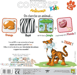 Version enfant du célèbre jeu Concept. L’enfant fait deviner un animal en plaçant des anneaux sur des icônes (couleurs, forme, habitat…).