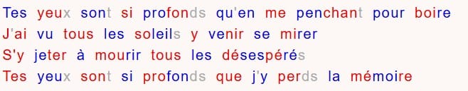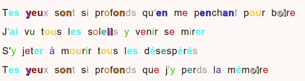 - alternance de lignes en couleur, alternance des mots,